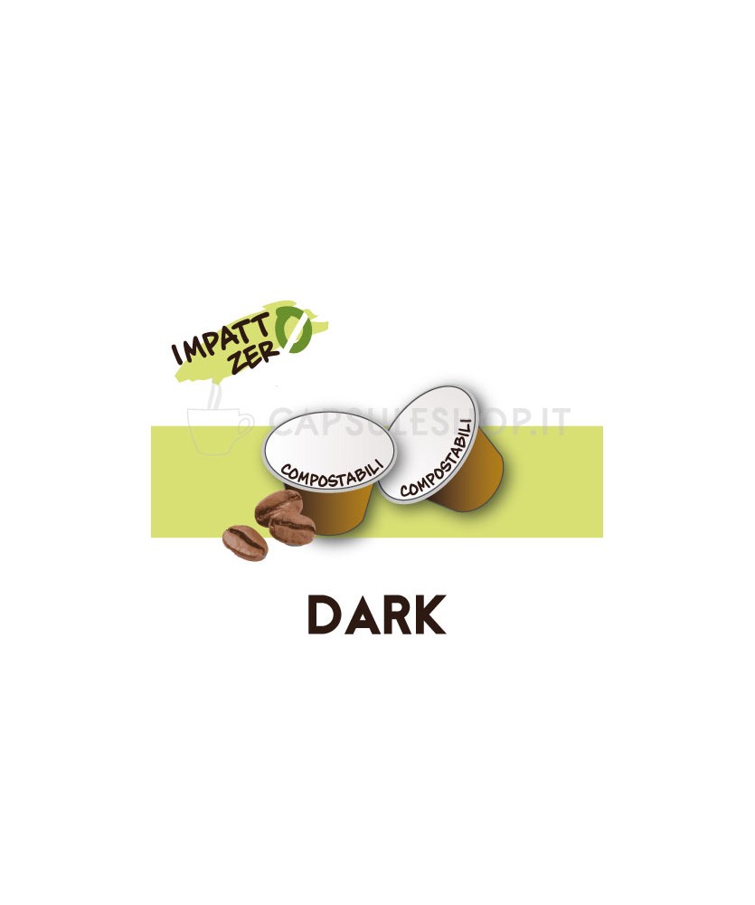 Die dunklen kompostierbaren Nespresso-Kapseln sind die große Neuheit von Passione 88. Zero Impact: die Kapseln, die die Umwelt lieben! Dank der speziellen Zusammensetzung der Kapsel können sie im Biomüll entsorgt werden. Dark gibt Ihnen einen dichten und kräftigen Espresso mit einem starken Geschmack mit Röstnoten und einem anhaltenden Abgang