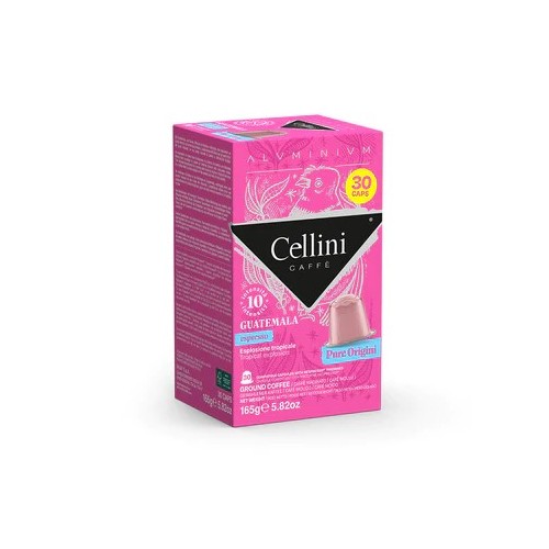 Cellinia partire da 9,60 €capsule 30Una pregiata miscela di caffè guatemaltechi Arabica e Robusta provenienti dalla regione di Santa Rosa. L’accurata selezione e il particolare processo di torrefazione offrono un equilibrio perfetto per degustare un caffè con spiccate note di cioccolato, rotondo al palato e dall’acidità fruttata. -
