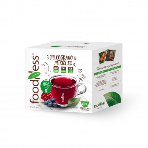 Tisana al Melograno e Mirtillo in capsule compatibili Dolce Gusto di Foodness. Un profilo aromatico dolce e delicato ed una piacevole nota aspra fanno di questa tisana l'ideale drink dissetante, sia caldo che freddo. Le capsule sono compatibili con tutte le macchine Dolce Gusto. La confezione contiene 10 capsule monouso riciclabili*.